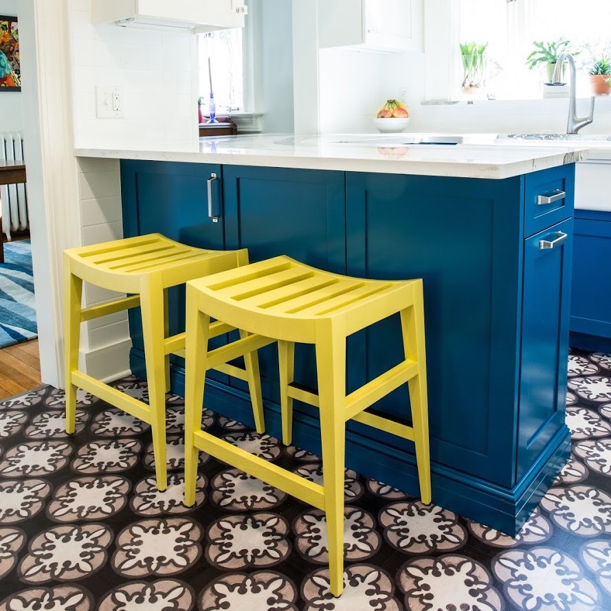 A descending curved slatted seat is elevated by gracefully tapering corner posts that are joined by stretchers.Material: Oak Solids