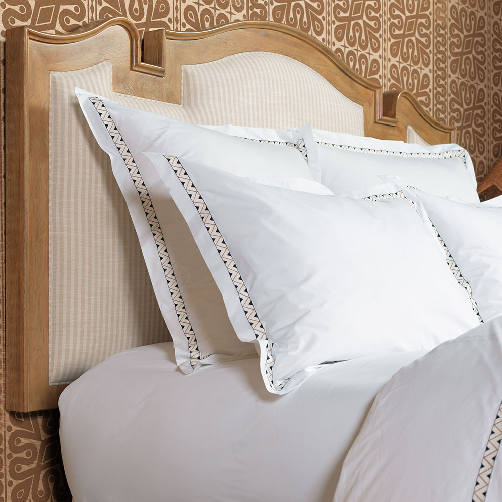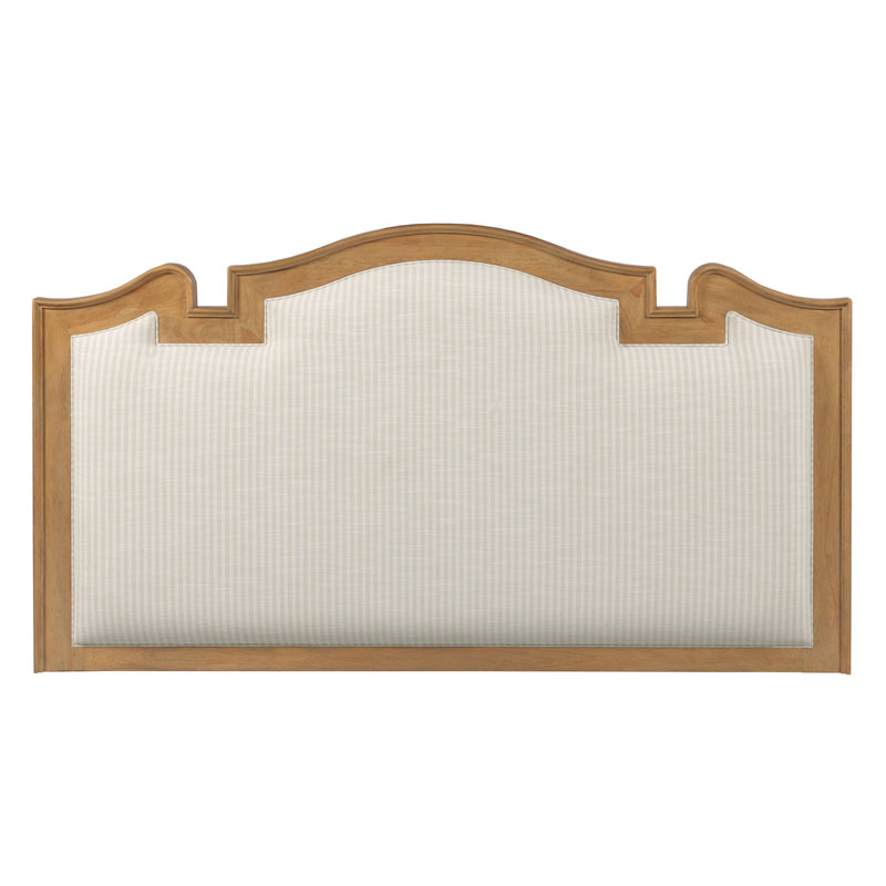 An intricately molded framing that surrounds an upholstered headboard. This features a metal cleat for wall mounted installation for flexibility of height.Material: hardwood solids