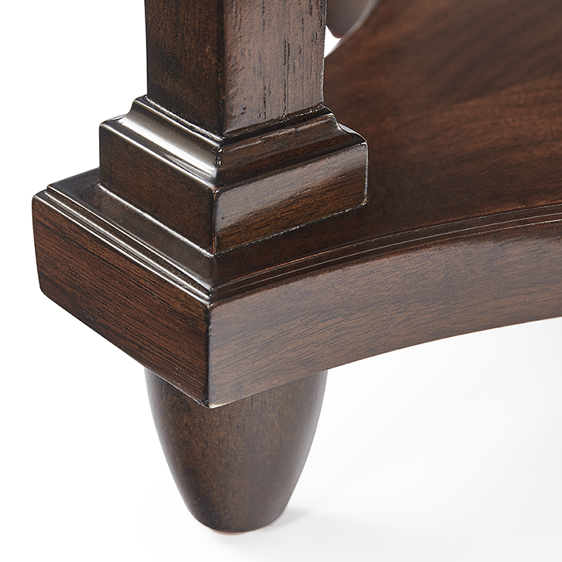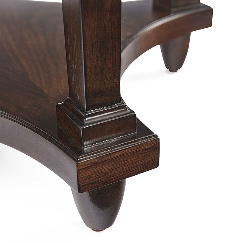 This drink table design is adapted from a 17th-century Italian original found in the Tuscan region. It features four tapered legs that are joined by a low shelf and turned feet.Material: Hardwood solids with walnut veneer