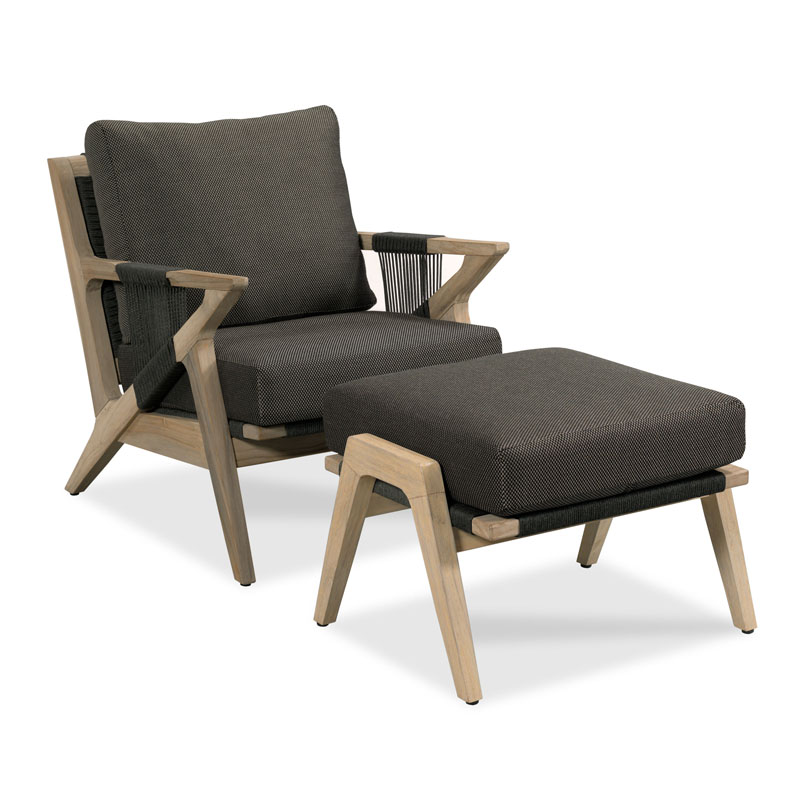 **AVAILABILITY SHOWN IS FOR FRAME ONLY. PLEASE CALL OR EMAIL FOR CUSHION AVAILABILITY**Styled in the spirit of mid 20th century Hans Wegner originals, an upholstered cushion above a rope weave frame elevated on four shaped legs.Material: Teak solids with handwoven synthetic rope weave
