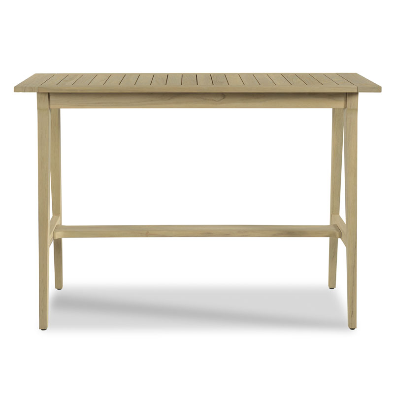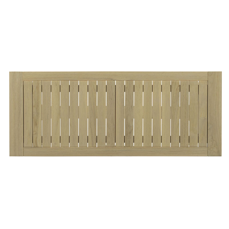 A wonderful table for indoor and outdoor serving purposes. The table is fashioned in the style of designer Hans Wegner from the 1960's. A rectangular slatted top is gracefully raised on shaped tapering canted legs that are joined by a low slatted shelf.Material: Teak solids