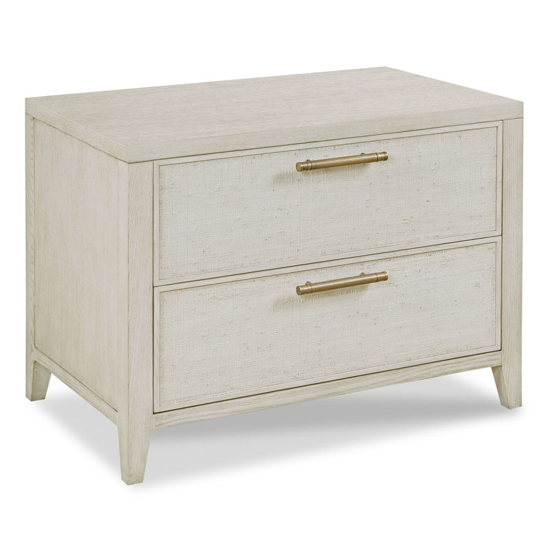 A rectangular top over squared corner posts that flank a pair of drawers overlaid with woven raffia giving the chest a handsome soft texture.Material: Ash solids and ash veneer