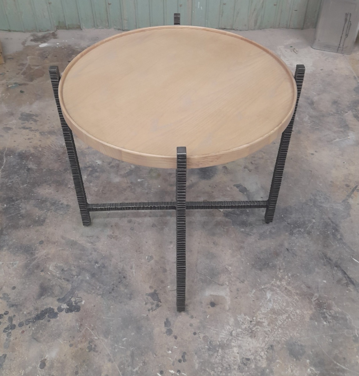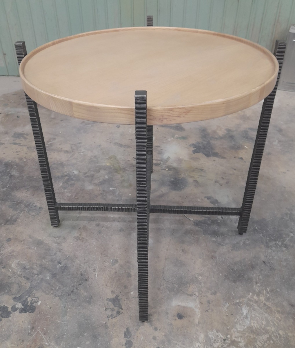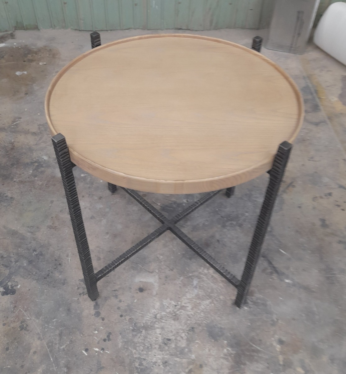 A galleried quarter sawn oak veneered top is finished in our Costa finish supported by a textured metal base in blackened metal finish.Material: Ash solids & Ash veneer
