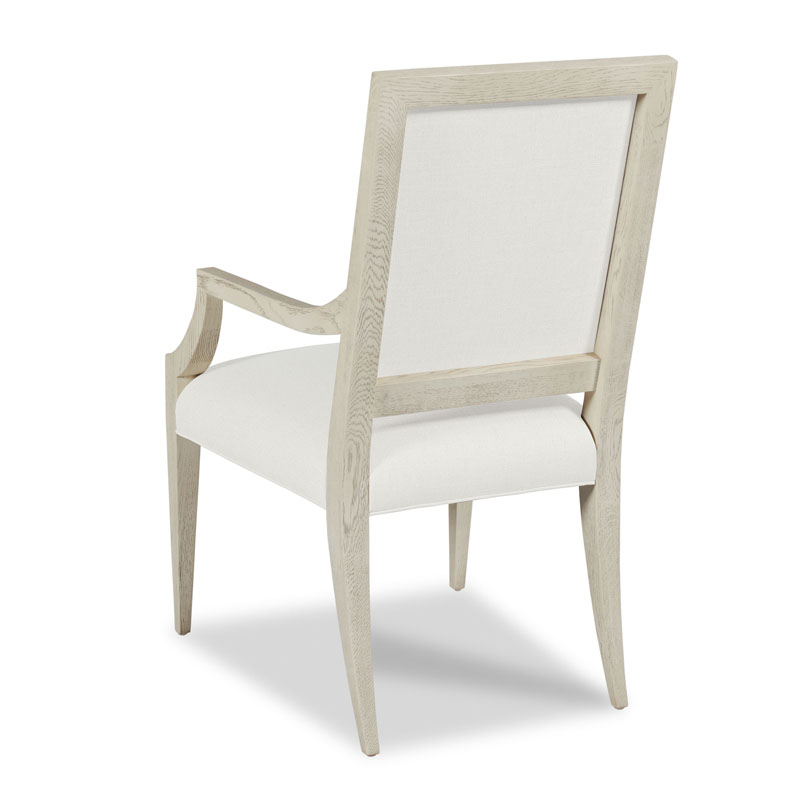 An upholstered back rests above an upholstered seat raised by tapering legs.Material: Oak solids