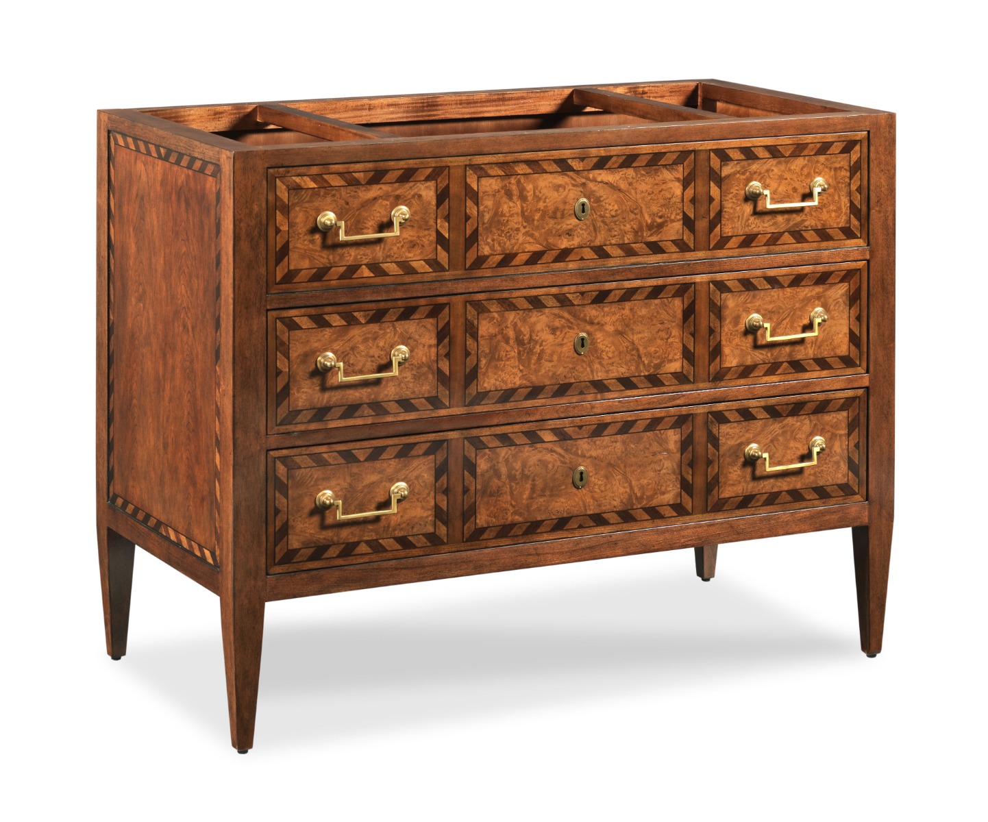 Material: Hardwood solids, cherry veneer, ebony, holly + amboyna veneer on drawer faces