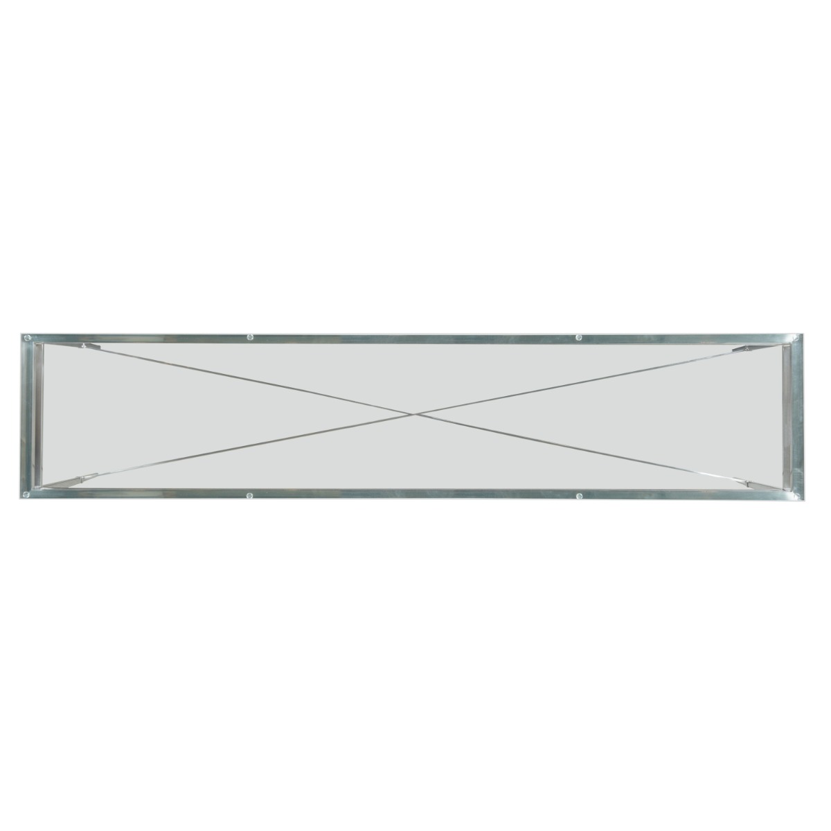 A terrific modern form crafted in metal and finished in a polished nickel. A rectangular beveled glass top rests over four gracefully tapering legs that are joined by a low “X” stretcher.Material: Steel and tempered glass