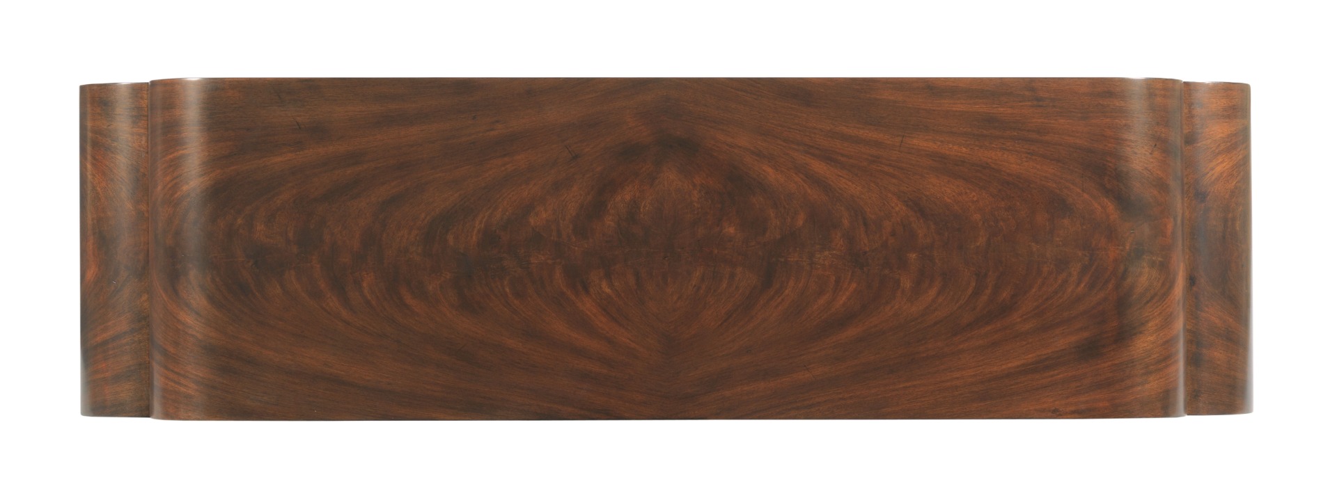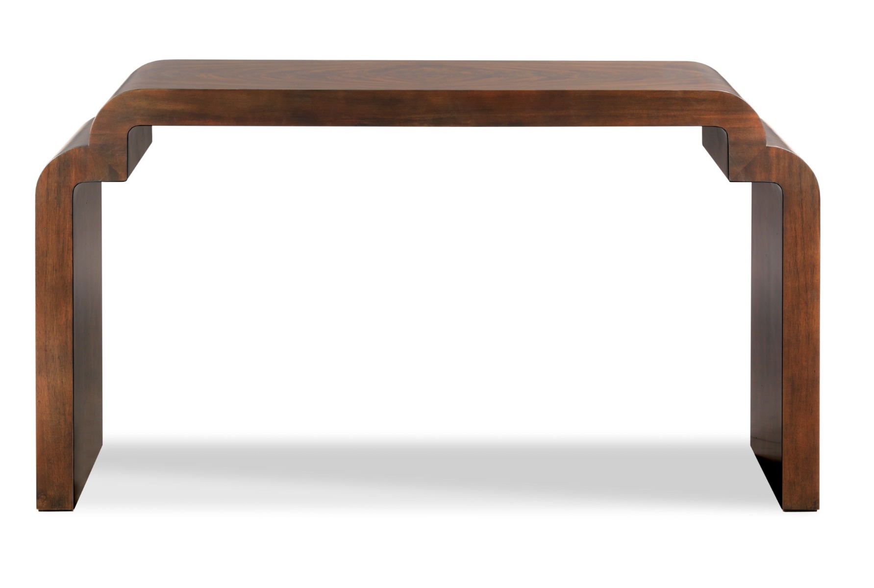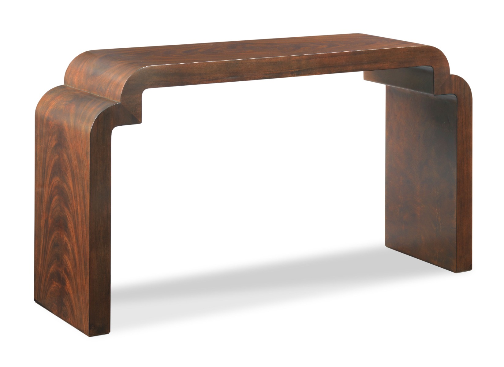 A very unique hall table with a top that is veneered with cerejeira cascading downward across the ends to the floor.Material: Cerejeira Veneer & hardwood solids