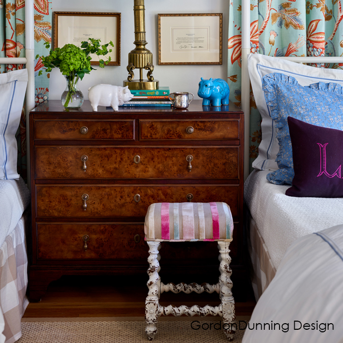 A molded rectangular top rests over five individual drawers over a bracket base.Material: Hardwood solids with mahogany and English brown oak burl veneer