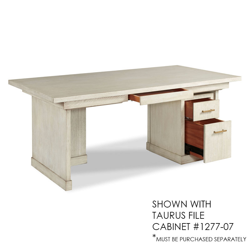 A robust rectangular framed top is veneered with quartered ash resting above a soft closing pencil drawer elevated by "T" shaped brackets that create a grand open space ample for typical desk chairs and our new file chest, 1277-07. *File chest sold separately*Material: Ash solids and ash veneer
