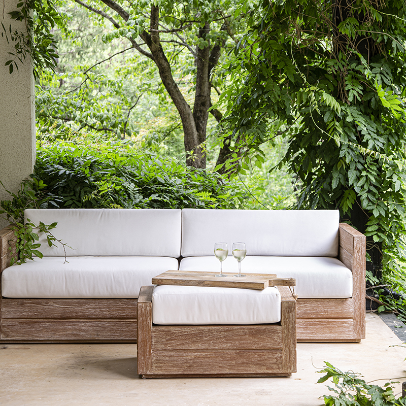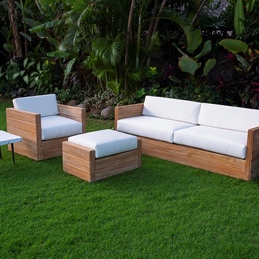 **AVAILABILITY SHOWN IS FOR FRAME ONLY. PLEASE CALL OR EMAIL FOR CUSHION AVAILABILITY** A cubist outdoor ottoman crafted from teak solids fitted with loose upholstered cushion.Material: Teak