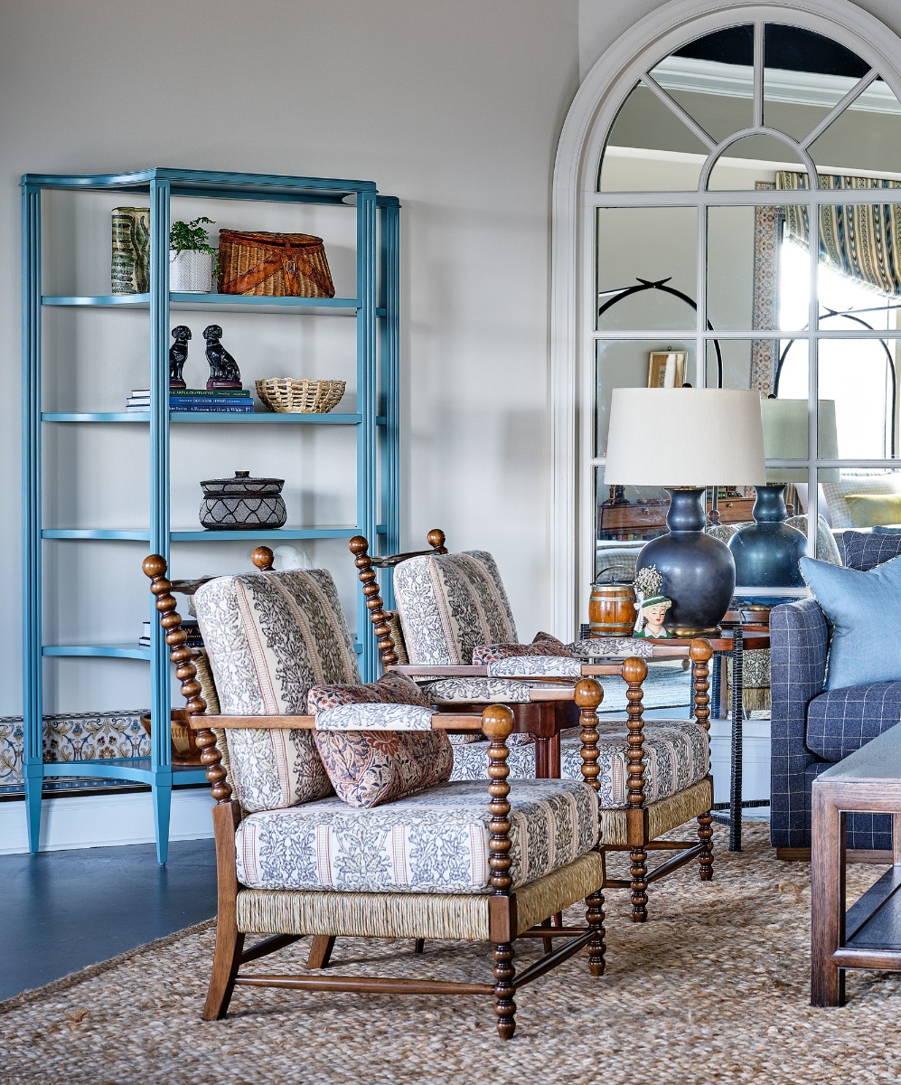 A graceful bookshelf with classical styling from the 18th Century. The case has squared fluted posts that hold five shelves.Material: Hardwood solids and cherry veneer