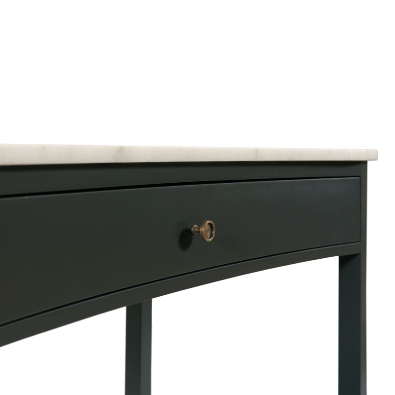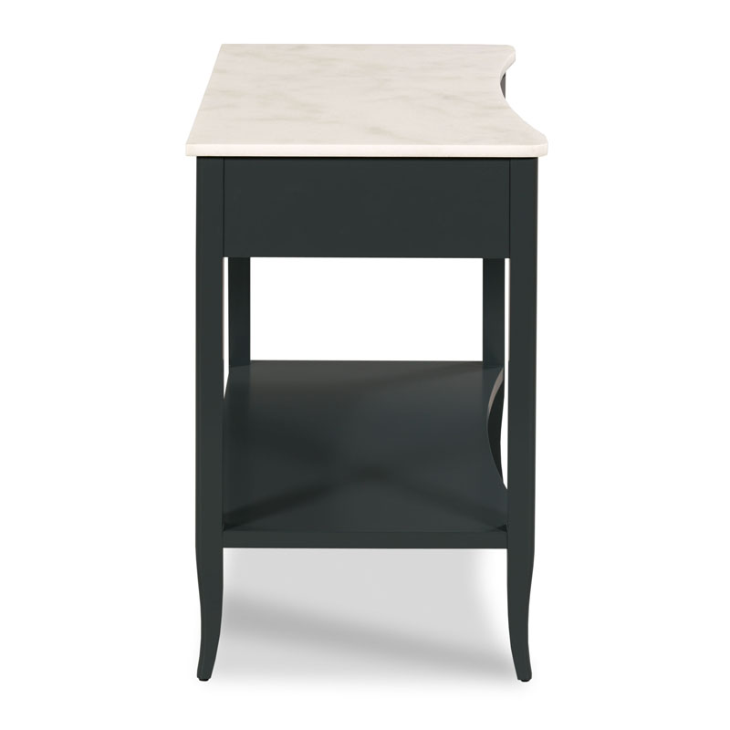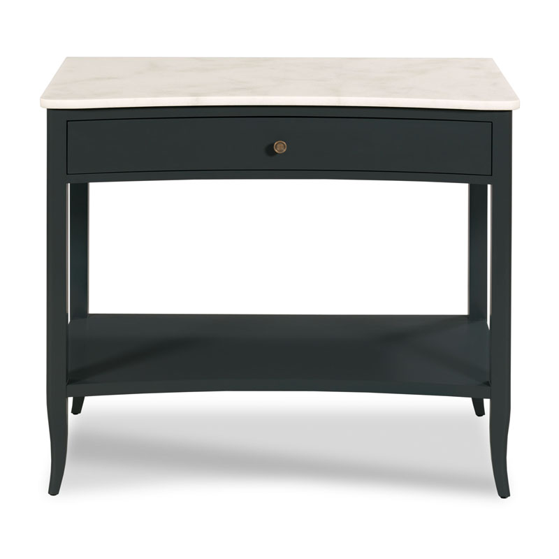 Elegant simplicity and classic styling best describe this wonderful table for bedside. A marble top rests over an apron rail drawer elevated on squared posts that terminate to stylized cabriole legs joined by a low shelf.Material: Hardwood Solids and marble top