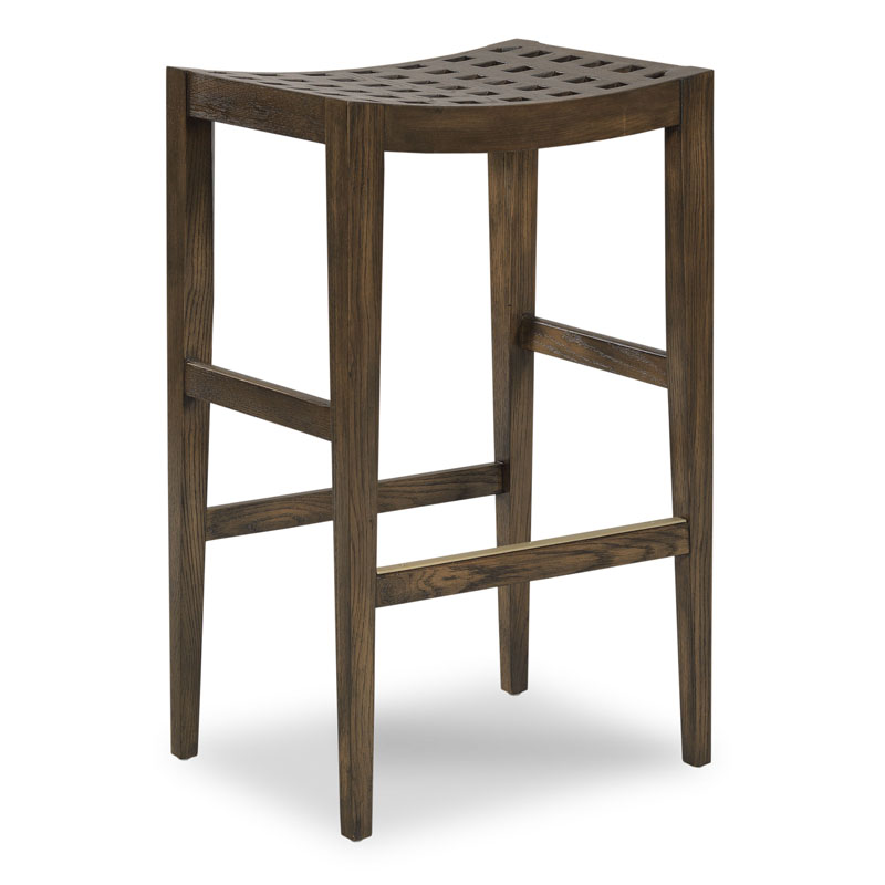A curved, pierced lattice work seat is raised by splayed, tapering legs that are joined by a box stretcher.Material: Oak solids