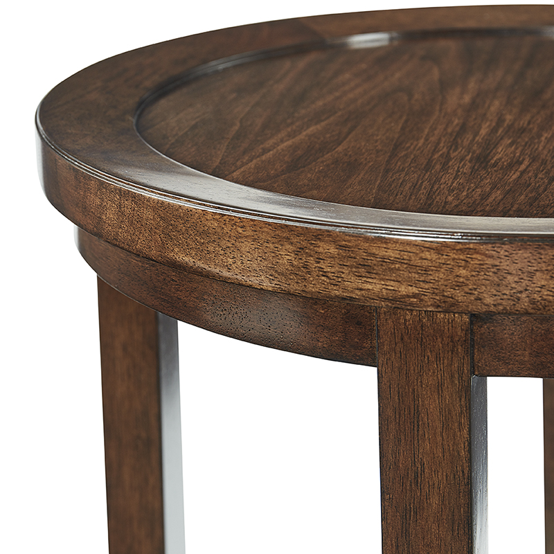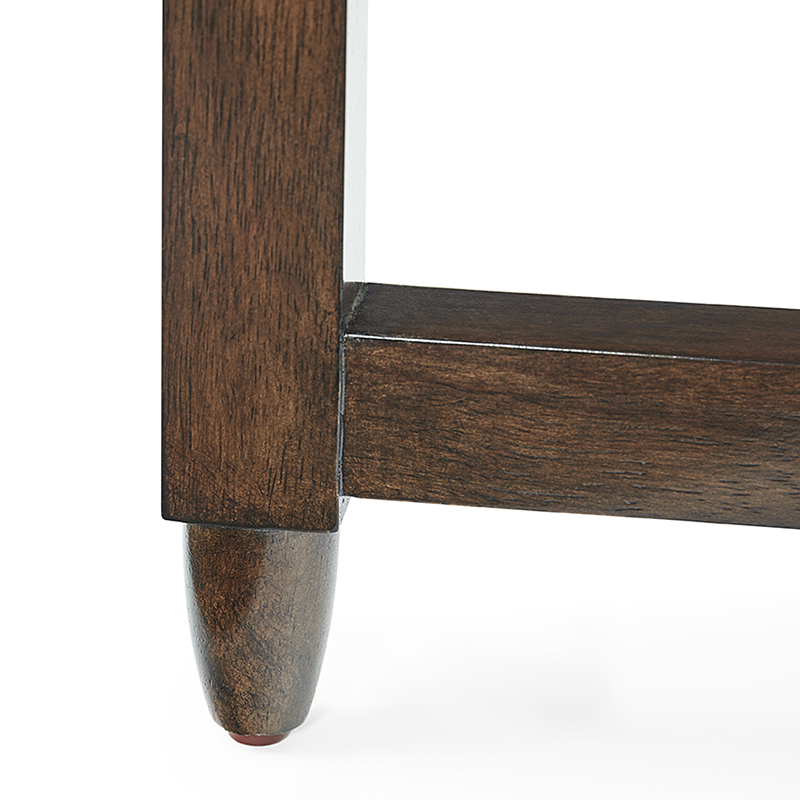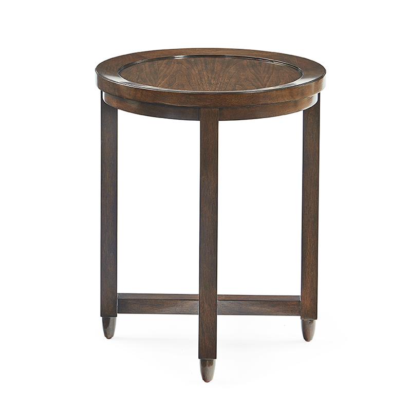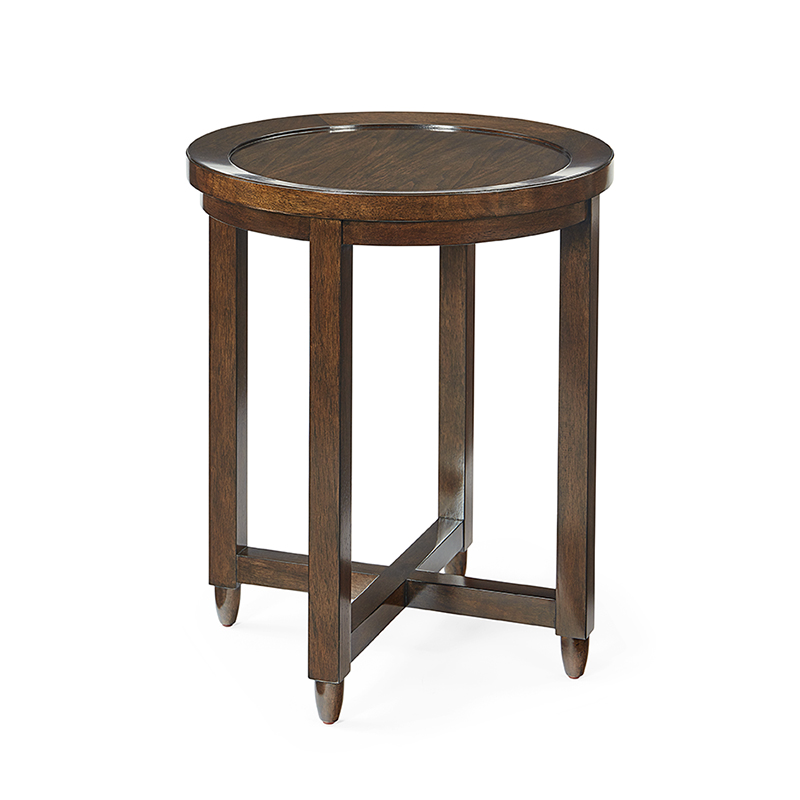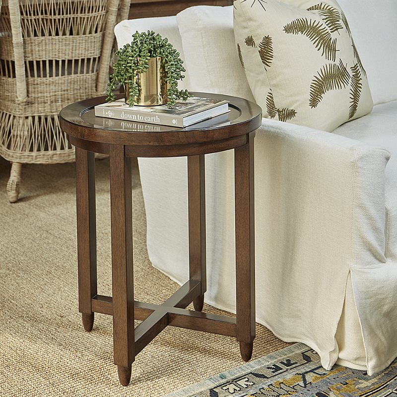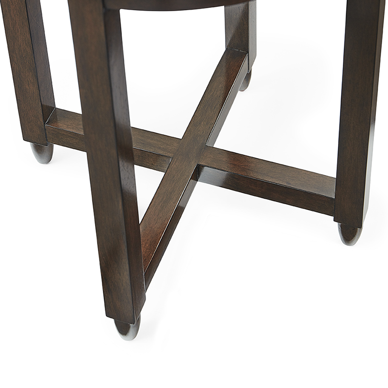 A clean unadorned form reminiscent of the modern styles made popular during the mid 20th century in Havana, Cuba. This drink table features four squared legs that support around the top over an X stretcher.Material: Hardwood solids & walnut veneer