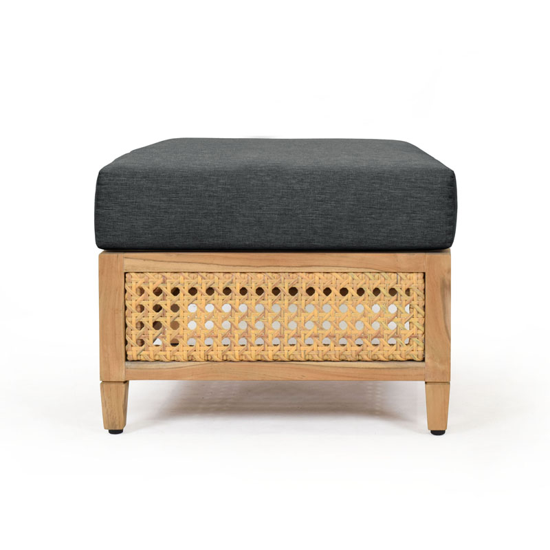 **AVAILABILITY SHOWN IS FOR FRAME ONLY. PLEASE CALL OR EMAIL FOR CUSHION AVAILABILITY** A sophisticated linear teak frame is accented by woven synthetic cane and fitted with a seat cushion.Material: Natural teak with Handwoven Synthetic Fiber