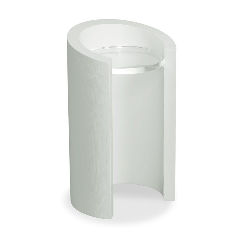 A handy table for drinks inspired by the early 20th century Art Deco style. A rounded oak veneered frame is angled at the top receiving an inset lucite top.Material: Oak solids and acrylic shelf