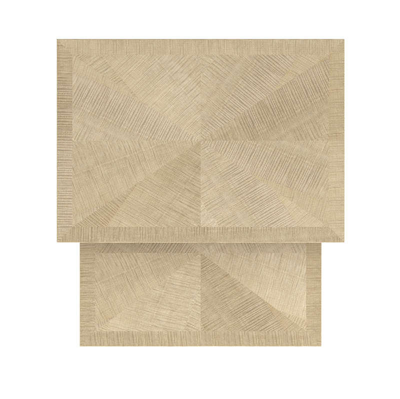 A rectangular top is veneered with rich quarter sawn English sycamore elevated on squared corner posts.Material: Hardwood solids and figured sycamore veneer