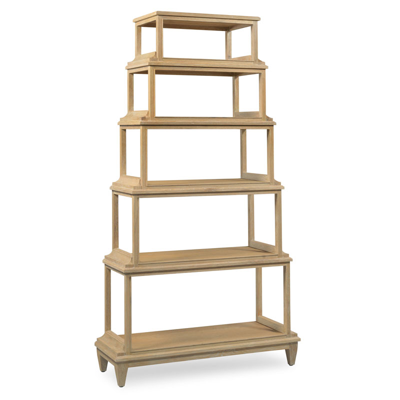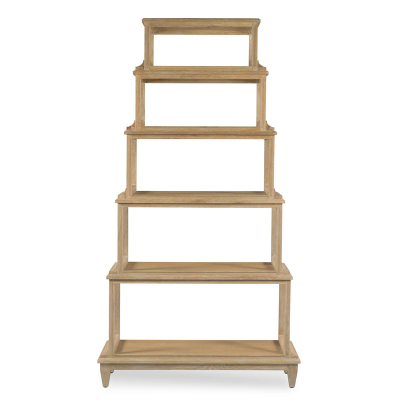 A truly handsome tiered bookcase with graduating shelves that rest over a rectangular base with tapering legs.Material: Oak solids and veneer