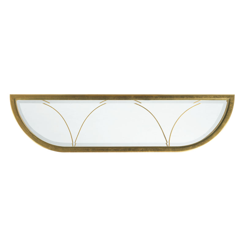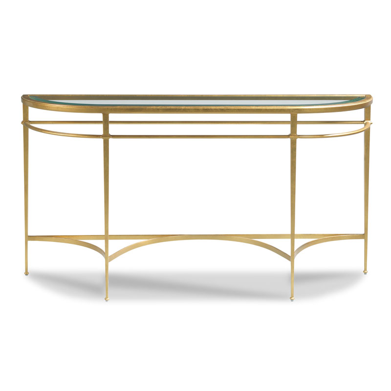 A lovely hall table inspired by 19th century French originals with an inset beveled glass top elevated by gracefully tapering posts, joined by shaped stretchers.Material: Forged steel with beveled glass top