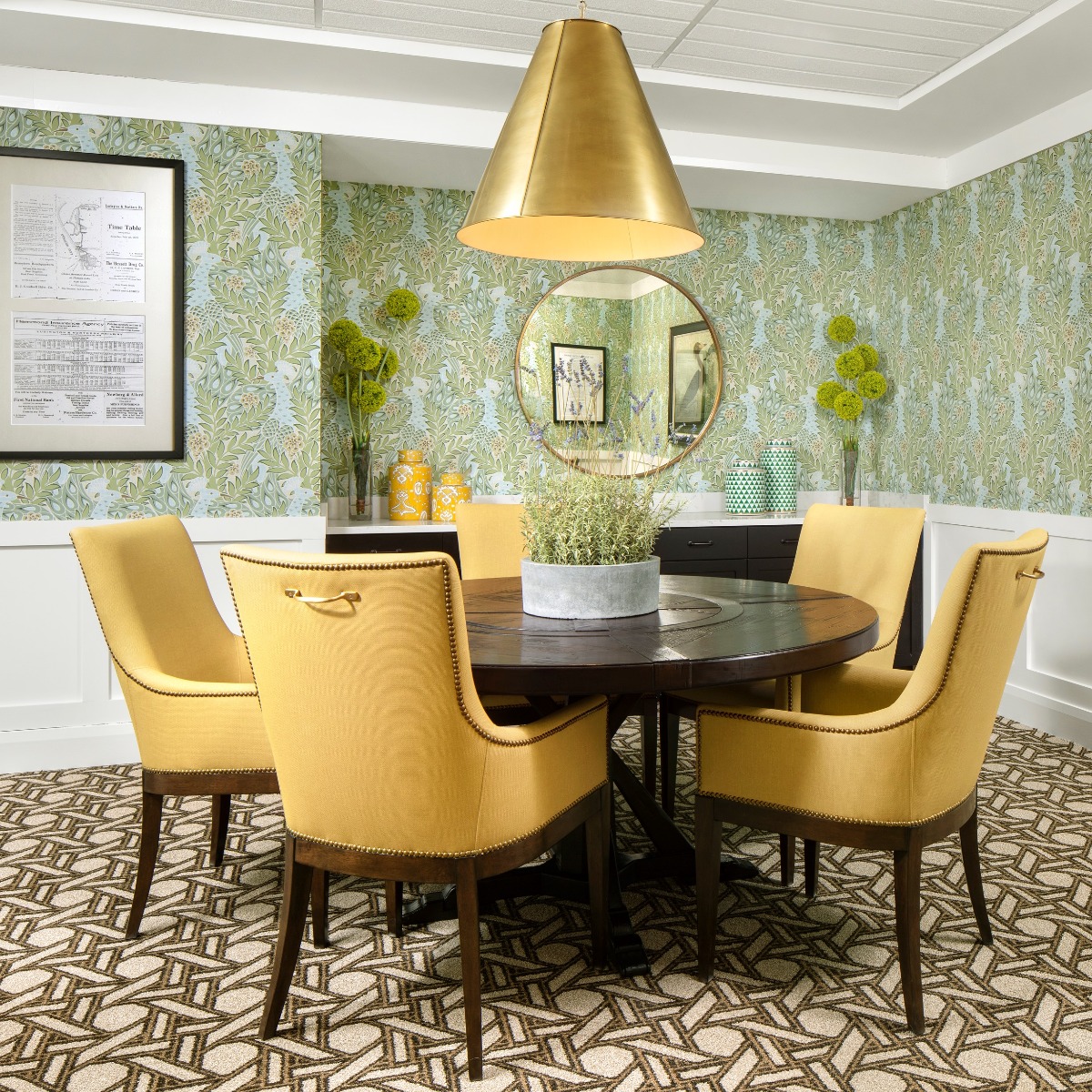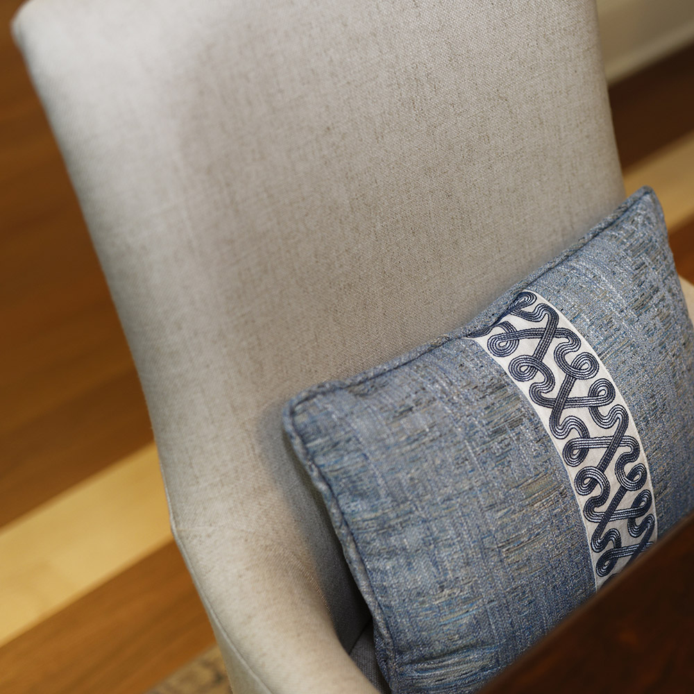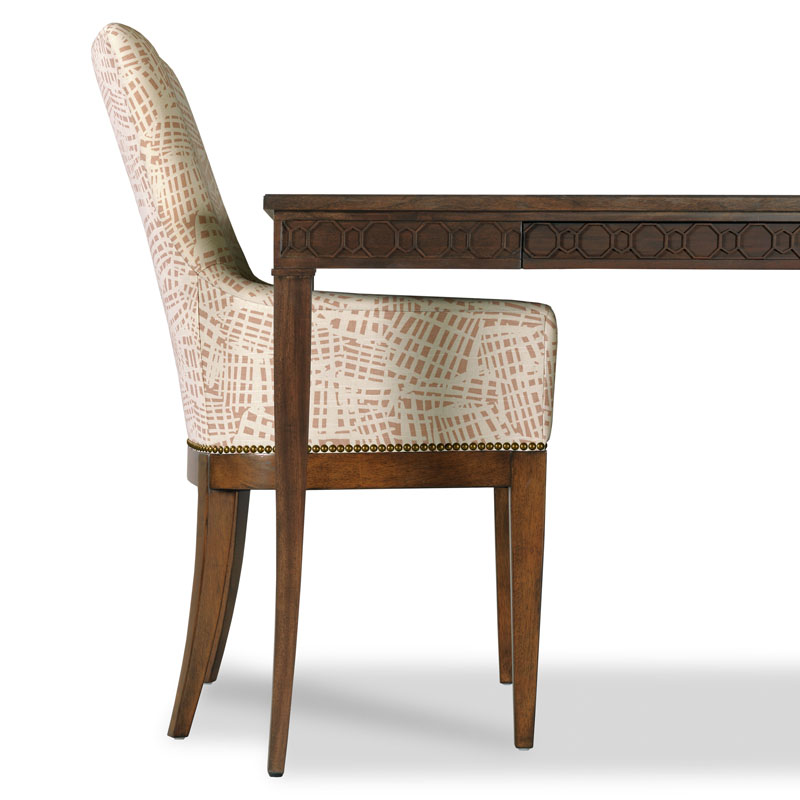 A curved upholstered back rests above an upholstered seat raised by tapering legs.Material: Hardwood solids