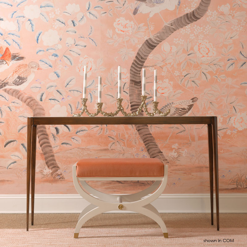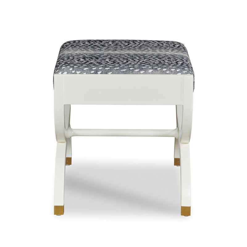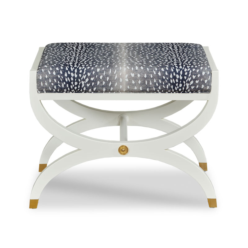 A charming 19th century French Empire inspired pull-up seat, perfect when used in pairs. A splendid upholstered cushion rests over shaped leg supports that terminate to brass sabots.Material: Hardwood solids with brass accents