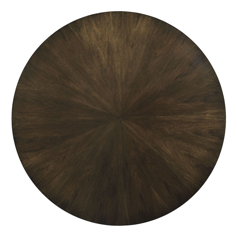 A stately center table with a solid pedestal base and a rich hue finished in our Mink finish. This table is well porpotioned to sit in a hall/foyer, breakfast room or living room.Material: Hardwood solids and walnut veneer