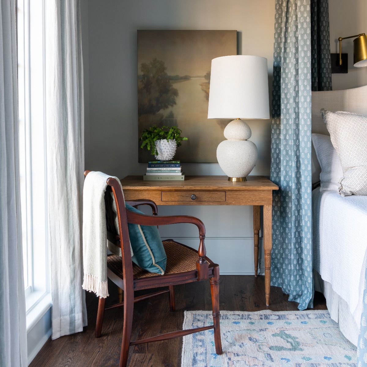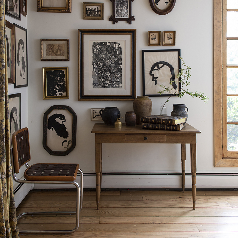 This understated design is adapted from late 18th century American colonial originals, sometimes called signing tables. A rectangular top rests on multi-ringed turned corner posts that flank an apron rail drawer.Material: Oak Solids and Oak Veneer