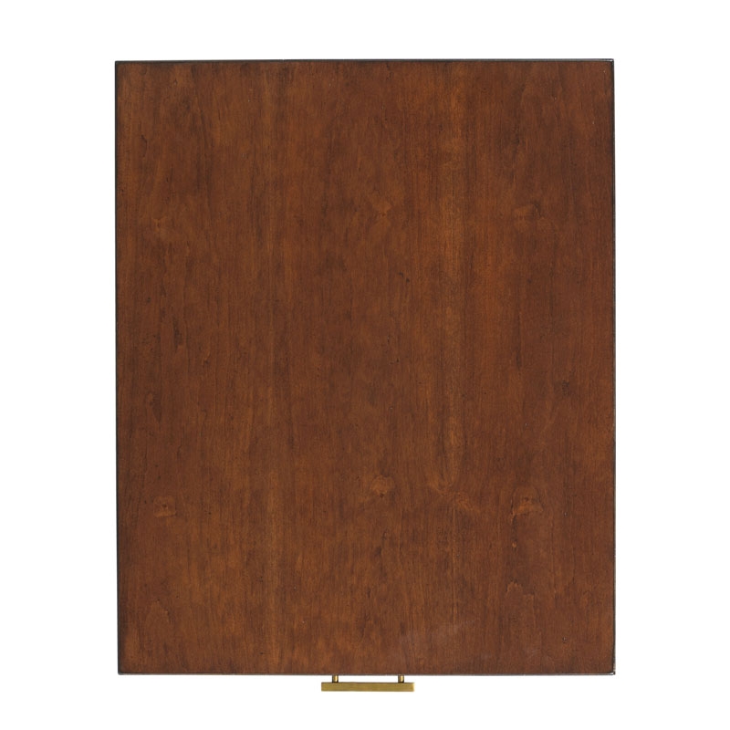 A graceful table with neo-classic roots with a rectangular top resting over an apron rail drawer and four squared tapered posts joined by a low shelf.Material: Hardwood solids and cherry veneer