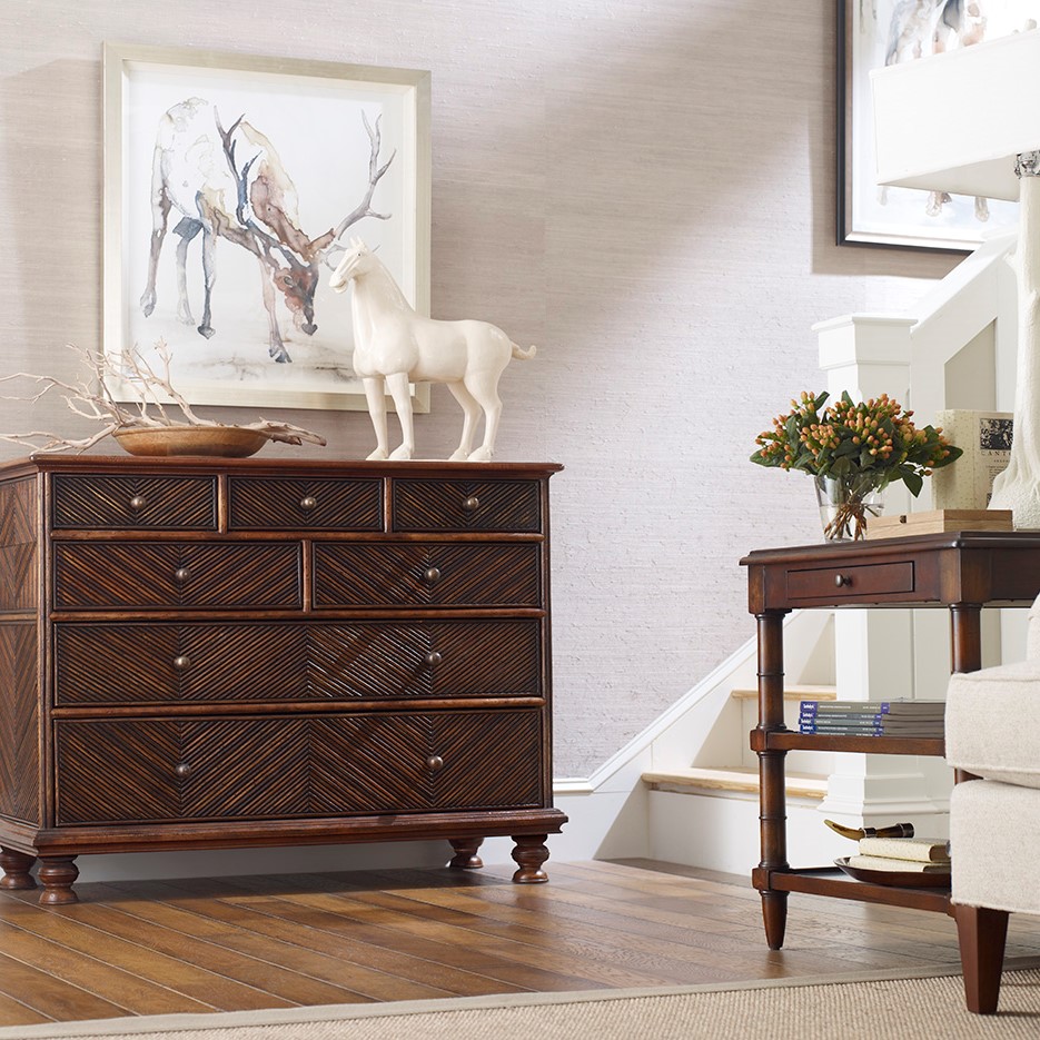 Adapted from the popular English style from the 19th Century. This handsome table is crafted from mahogany solids and veneer. The top features a mappa burl inlay border surrounded by a raised gallery. The four turned posts that are joined by low galleried shelves.Material: Hardwood solids with mappa burl and mahogany veneer