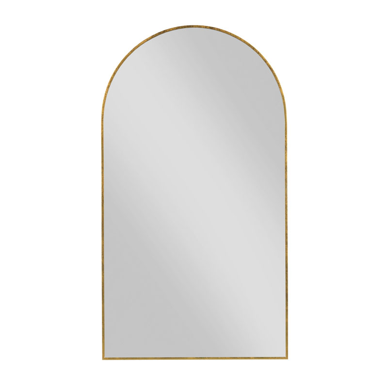 Inspired by European Romanesque architecture from the 10th Century. A metal arched frame is leafed with silver and fitted with a mirrored looking glass.Material: Metal, Gold Leaf