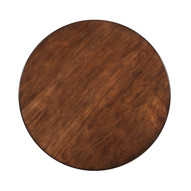 A graceful table adapted from 18th century French originals with a circular top resting above concave apron rails raised on gracefully tapering saber legs.Material: Hardwood solids and cherry veneer