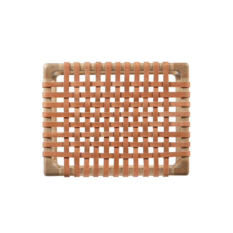 This stool is crafted in oak with softly rounded legs and an elevated seat with leather straps offering comfort and unique design.Material: Hardwood Solids with Leather strapping