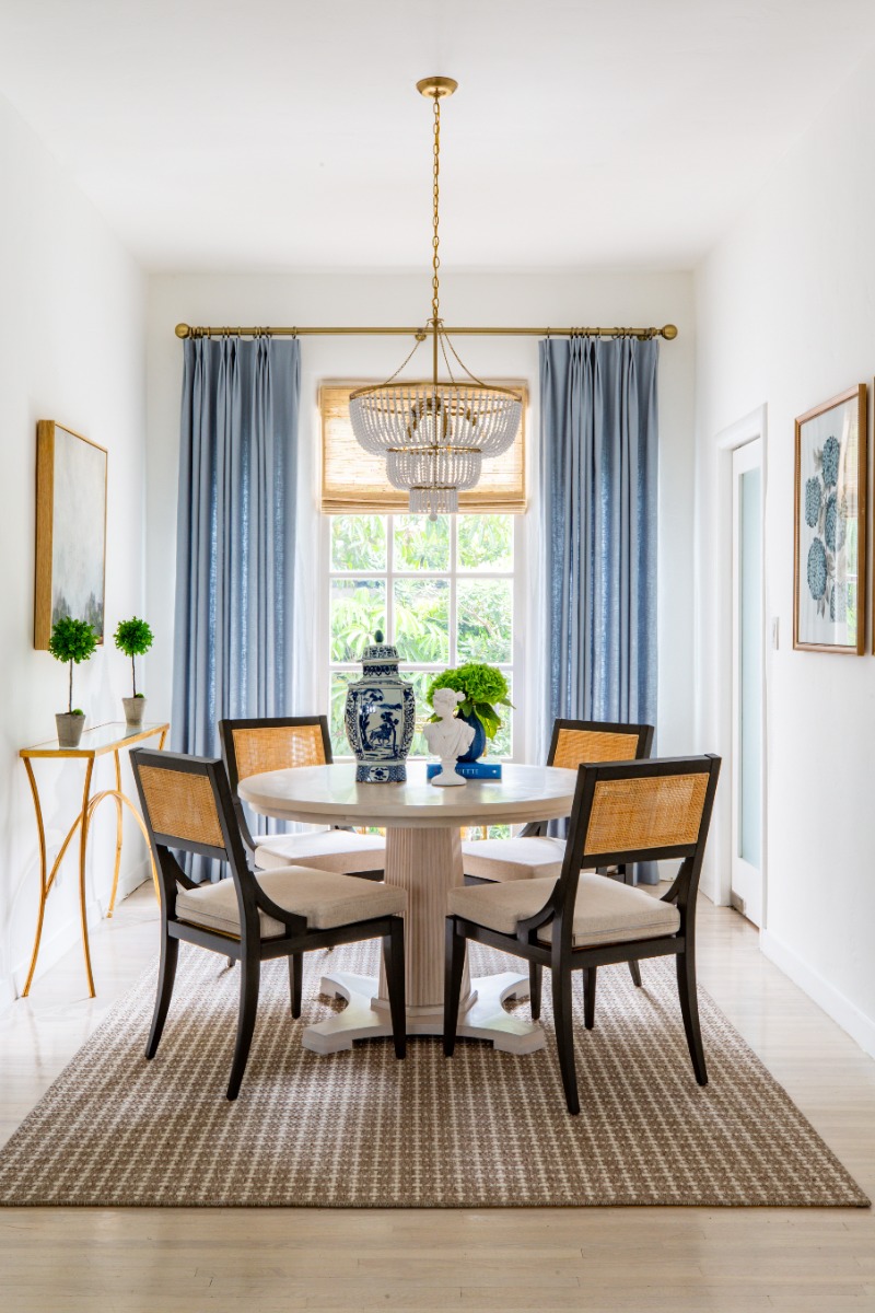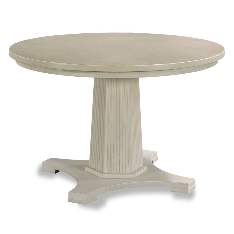 A simply gorgeous table adapted from the 19th century English regency style. A circular top is veneered in a sunburst pattern over a delicate apron rail supported by a central tapered hexagon column that is accented with reeded details mounted to a quatrefoil shaped base.Material: Hardwood solids and sycamore veneer