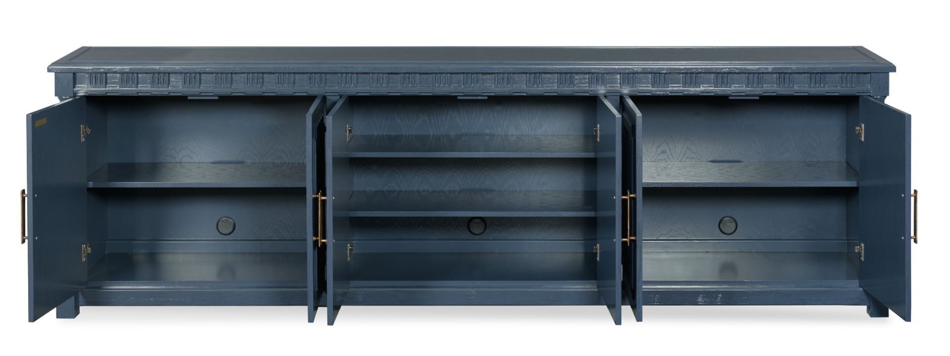 Crafted with meticulous attention to detail, this media cabinet stands out with its timeless dental molding. This cabinet has generous dimensions and ample storage.Material: Hardwood Solids and oak veneer